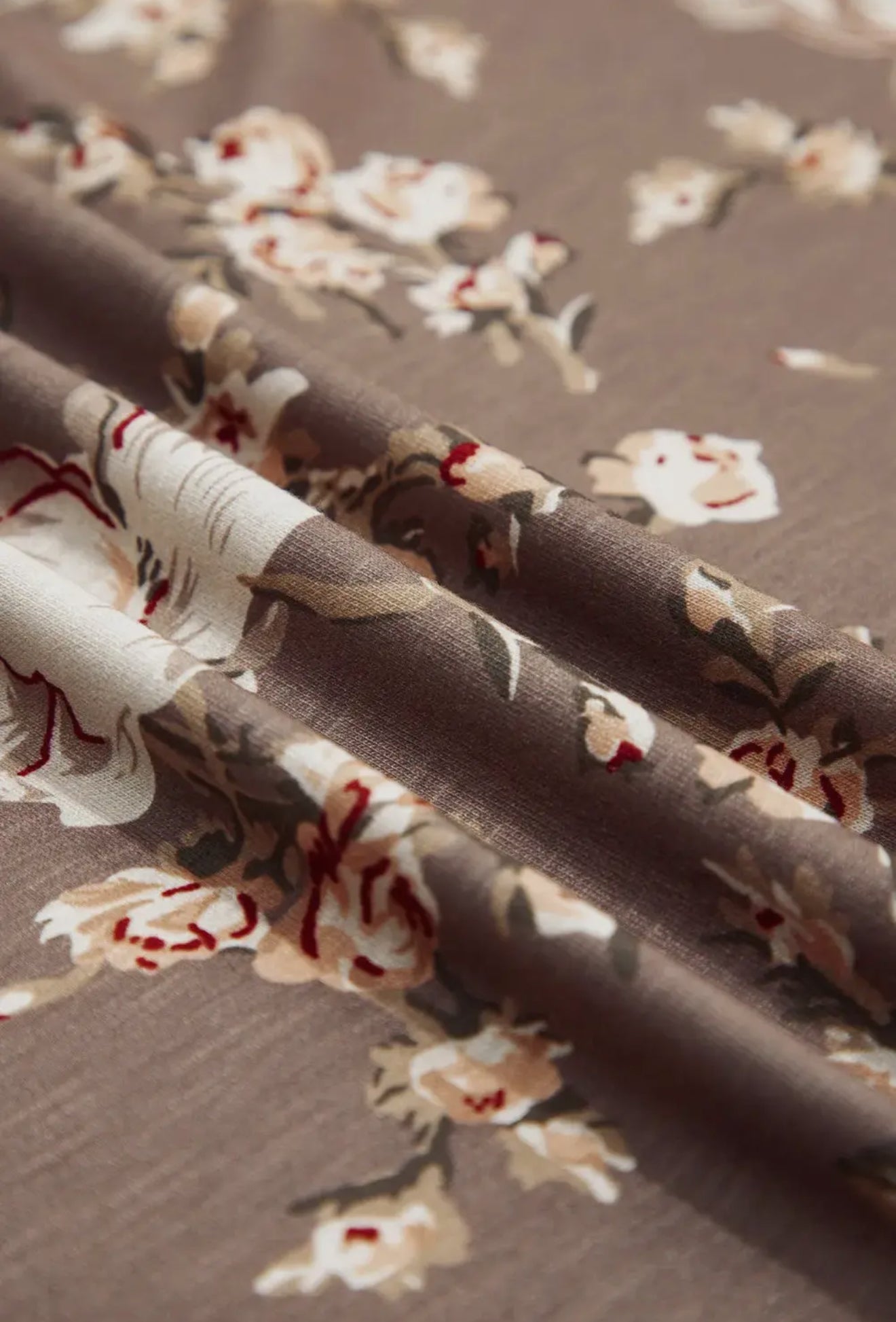 Elevate your wardrobe with our Brown Floral Flutter Skeeve Top.
